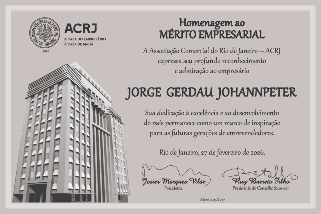 O presidente da ACRJ, Josier Vilar, ressaltou a trajetória do homenageado destacando que Jorge Gerdau, carioca de nascimento, é símbolo de visão de longo prazo, coragem empreendedora, representando o que há de melhor no ambiente empresarial do país. “Recebemos nesta Casa – a mais antiga instituição empresarial do país e que carrega o espírito visionário do Barão de Mauá – um homem que fez da disciplina, da eficiência e do trabalho sério uma verdadeira filosofia de vida. Com esta homenagem, a ACRJ celebra aqueles que constroem, inovam e transformam o Brasil”, ressaltou o presidente Josier Vilar.