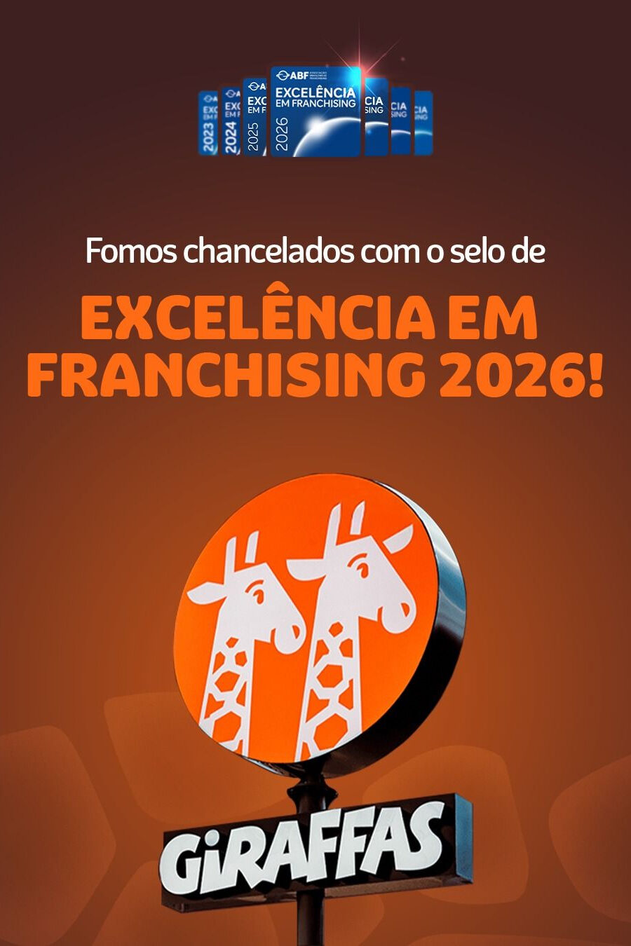 O Giraffas acaba de conquistar, pela 20ª vez, o Selo de Excelência em Franchising (SEF), concedido pela Associação Brasileira de Franchising (ABF). Reconhecida na categoria Mega, no segmento de Alimentação, a rede reafirma a consistência de seu modelo de negócio e a solidez da relação com seus franqueados ao longo de sua trajetória.